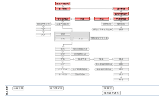 單(dan)(dan)證管理(li):在(zai)L/C、D/A、D/P三種(zhong)付款方式下,出口(kou)商要(yao)(yao)將進(jin)(jin)口(kou)商要(yao)(yao)求提交(jiao)的單(dan)(dan)據經出口(kou)地銀行(xing)發送到進(jin)(jin)口(kou)地銀行(xing),再由進(jin)(jin)口(kou)地銀行(xing)照要(yao)(yao)求將單(dan)(dan)據轉送到進(jin)(jin)口(kou)商