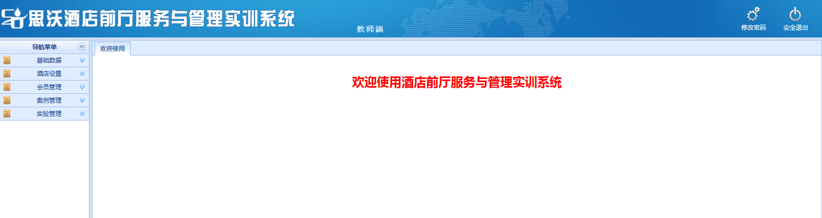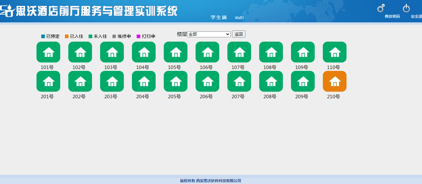 思沃酒(jiu)店(dian)前廳(ting)服務(wu)與管(guan)理(li)模(mo)(mo)擬實訓平臺系統以學生酒(jiu)店(dian)前廳(ting)工作(zuo)崗位(wei)任務(wu)為基礎,以案例(li)動畫結合(he)的(de)模(mo)(mo)式開展情景模(mo)(mo)擬實訓,學生可在(zai)該教學軟件(jian)(jian)設置的(de)虛擬酒(jiu)店(dian)環境中,完(wan)成預定、入住(zhu)辦(ban)理(li)、續住(zhu)、退房(fang)、換房(fang)、會(hui)員管(guan)理(li)、故障報修、投訴處理(li)、黑名單等相關案例(li)任務(wu)的(de)操作(zuo)。該教學平臺軟件(jian)(jian)可以逼真的(de)體驗實際酒(jiu)店(dian)前廳(ting)工作(zuo)的(de)過程。本公司為了更(geng)好滿足(zu)高校的(de)教學需求,也(ye)會(hui)根據高校的(de)需求提(ti)供(gong)酒(jiu)店(dian)管(guan)理(li)實訓室解決(jue)方案,