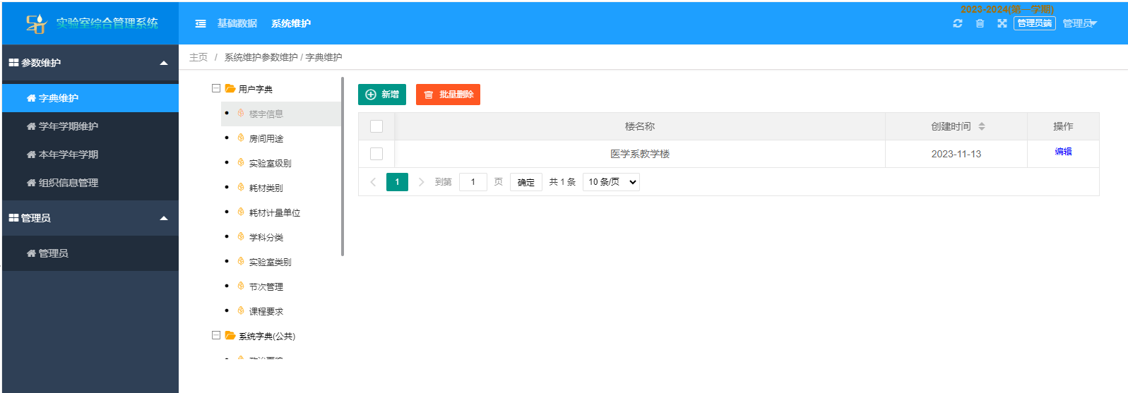 系(xi)統維護(參數(shu)維(wei)護(hu)(hu)(hu)(字典維(wei)護(hu)(hu)(hu),學(xue)年學(xue)期(qi)(qi)維(wei)護(hu)(hu)(hu),本年學(xue)年學(xue)期(qi)(qi),組織信息管理),管理員(yuan))。